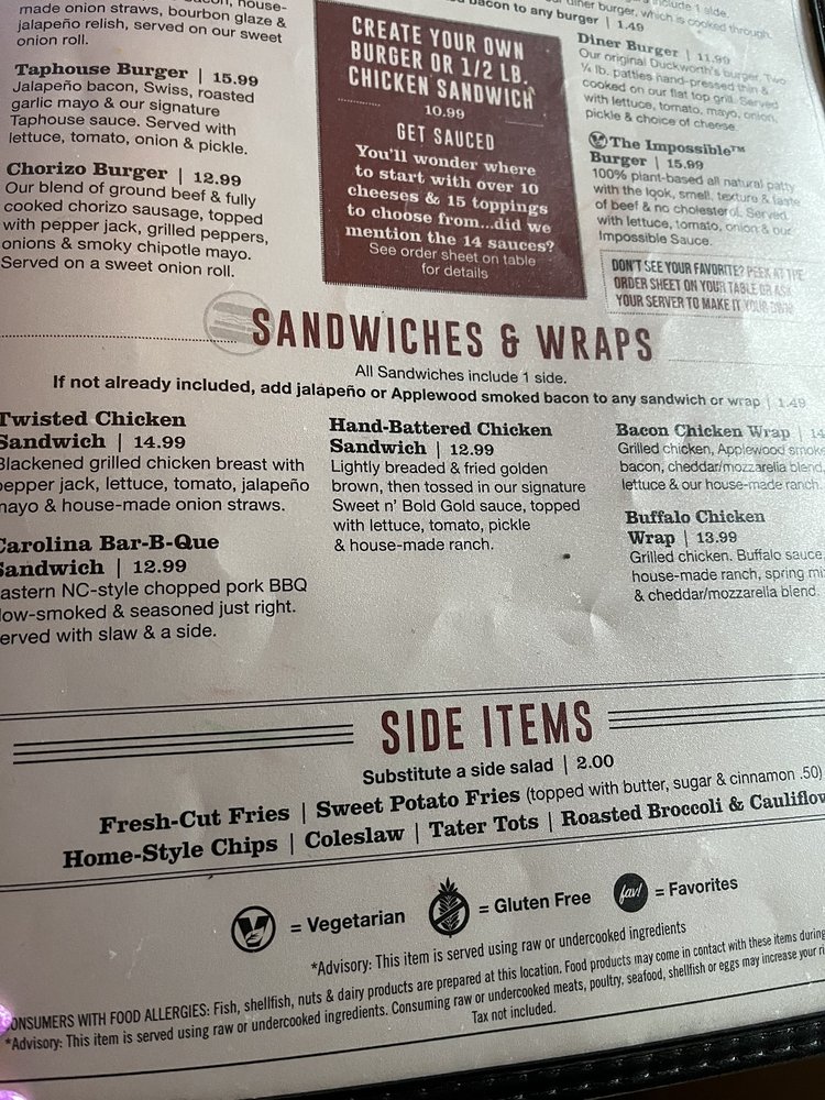 Welcome to Duckworth's Grill, a popular sports bar in Charlotte, NC that offers a laid-back environment and excellent service. Known for their great selection of beers on draft and delicious food options, Duckworth's Grill is a go-to spot for many customers. From the crispy and juicy wings to the mouthwatering burgers and nachos, the menu is sure to satisfy any craving. Customers rave about the Hand-Battered Chicken Sandwich, Fish and Chips, and the addictive pretzel bread rolls. The craft cocktail game is also a pleasant surprise, with the option to choose from a wide selection. With a variety of options for vegetarians and vegans, as well as outdoor seating and free Wi-Fi, Duckworth's Grill is a versatile spot for groups, families, or a casual night out. Join the fun at Duckworth's Grill and experience the A+++ wings and overall great atmosphere for yourself.