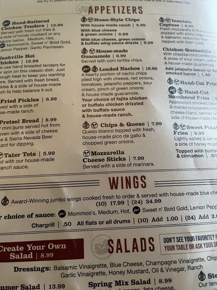 MOMMOO'S WINGS MOMMOO IS WHAT I CALLED MY GRANDMOTHER BECAUSE I COULDNT SAY GRANDMA WHEN I WAS YOUNG. THIS IS HER RECIPE OF DIFFERENT INGREDIENTS & WEVE BEEN USING IT IN OUR FAMILY FOR DECADES. THESE WINGS ARE FRIED CRISPY THEN QUICKLY CHARGRILLED BEFORE BEING SAUCED WITH A VINEGAR BASED SAUCE. ALL WINGS Award-Winning jumbo wings cooked fresh to order & served with house-made blue cheese or ranch.